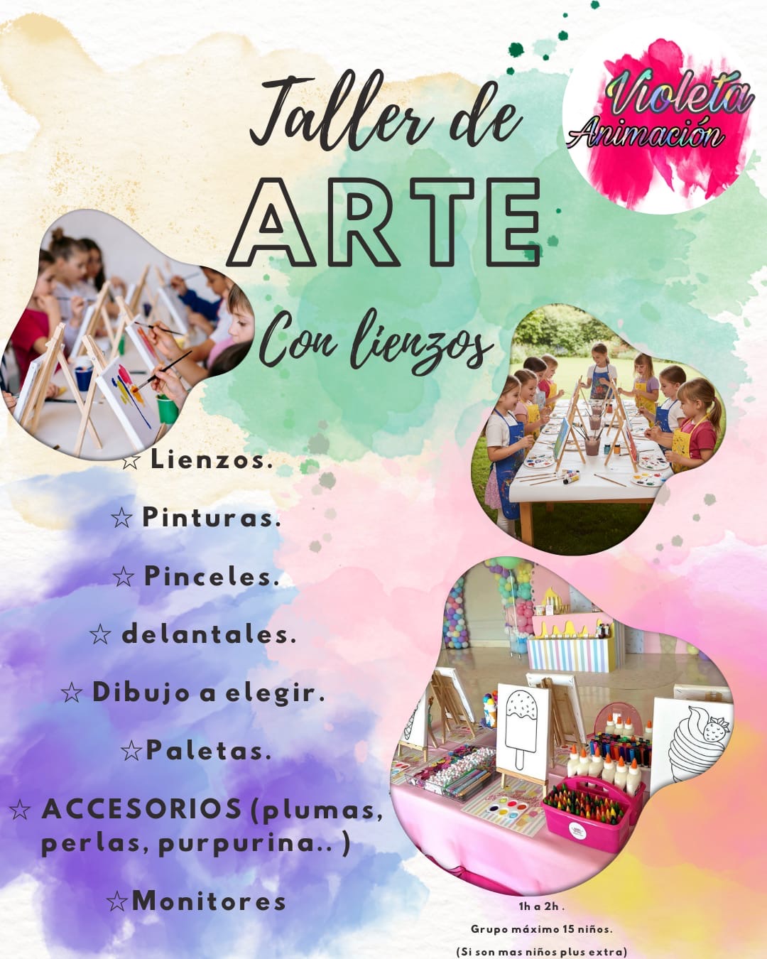 Incluye 2 animadores durante 2 horas. Actividades interactivas, talleres creativos, mini espectáculo y animación musical.